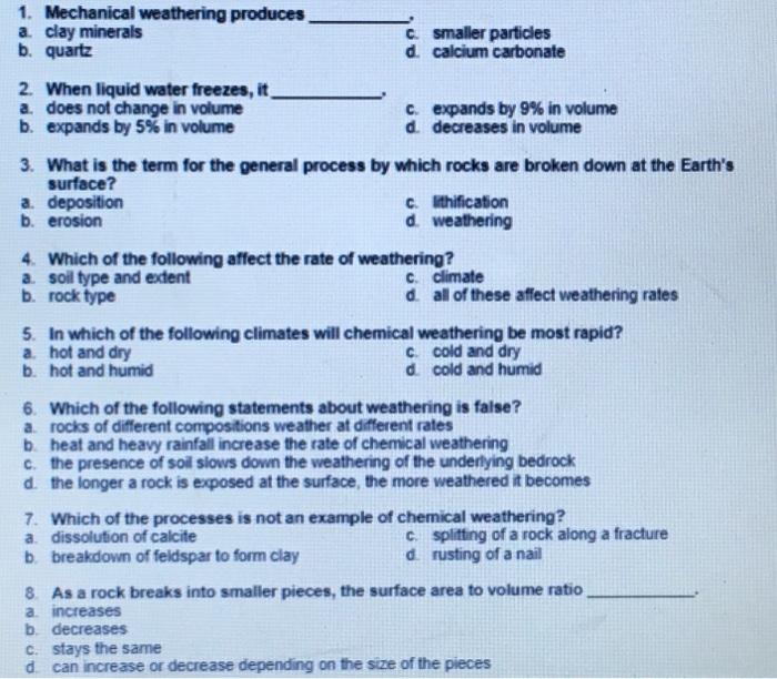 Solved 1 Mechanical Weathering Produces A Clay Minerals C Chegg Com